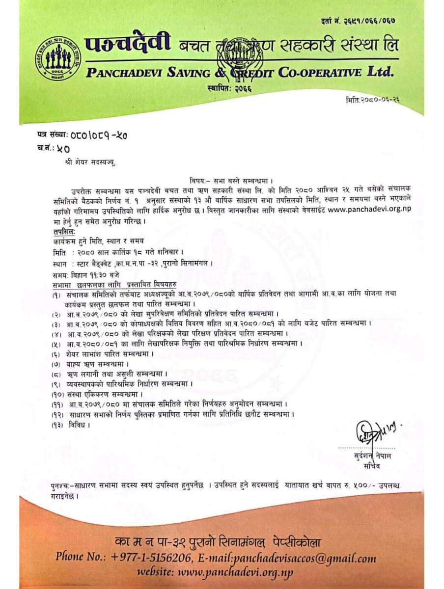 सर्वाधिकार © पञ्चदेवी बचत तथा ऋण सहकारी संस्था लि मा सुरक्षित | Designed And Developed By: Xenatech Nepal